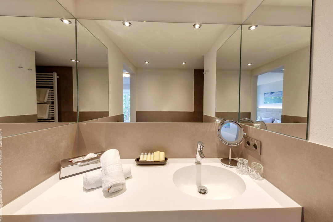 Unsere hellen, modern eingerichteten Zimmer verfügen über edle Parkettböden und komfortable, begehbare Duschen. Der WC-Bereich ist separat angelegt und sorgt für zusätzlichen Komfort. Vom französischen Balkon genießen Sie einen schönen Blick in den Garten.